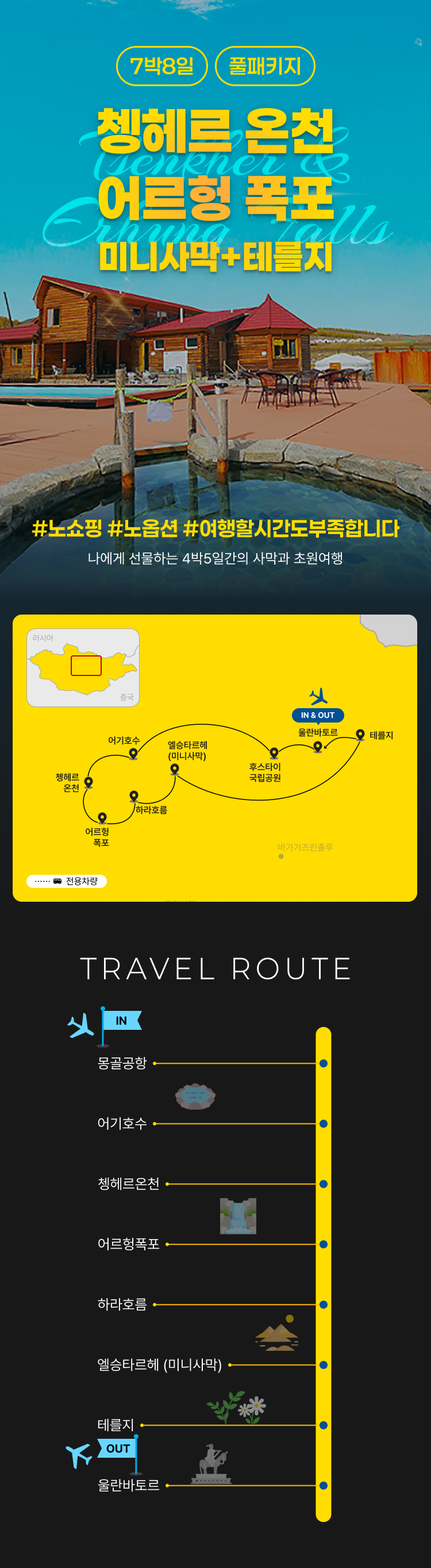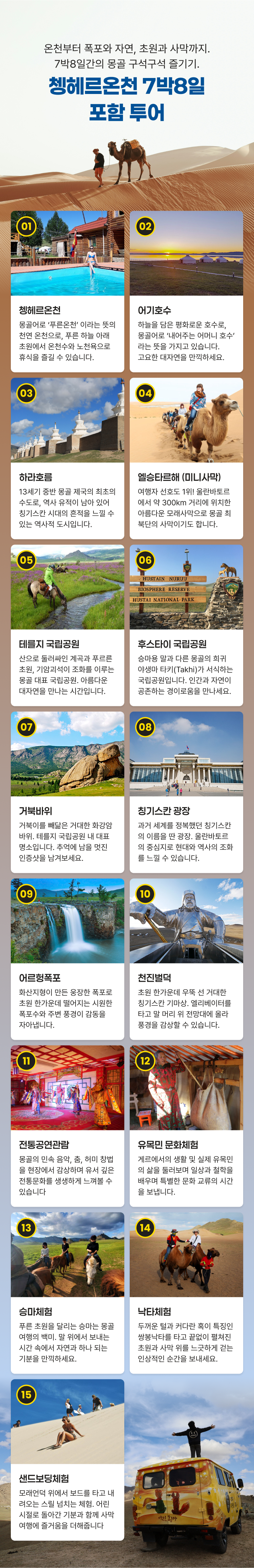 [7박8일] (중부여행)쳉헤르온천♨️어르헝폭포🐫미니사막 | 풀패키지✈️인천출발